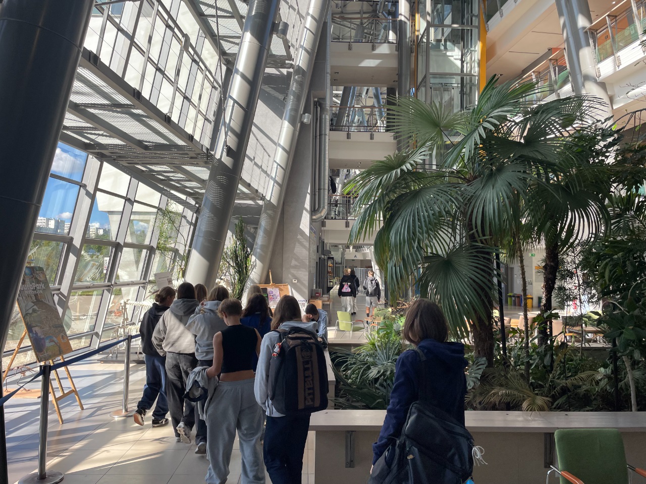 👣 Uczniowie poznali wystawy edukacyjne oraz wykonali autorską grę terenową po budynku przygotowaną przez nauczyciela biologii eksplorując przestrzeń Wydziału. Rozwiązywali zadania i zagadki naukowe współpracując ze sobą. Wirtualny spacer po budynku wspomogła również aplikacja mobilna.