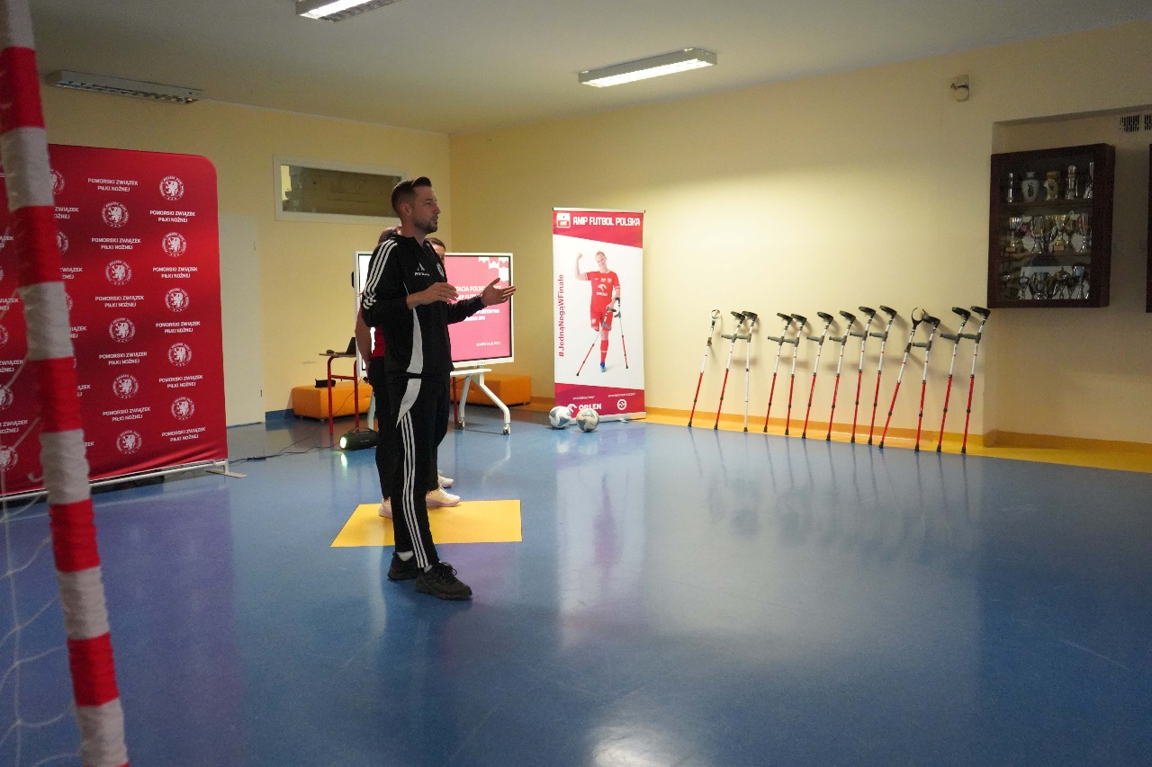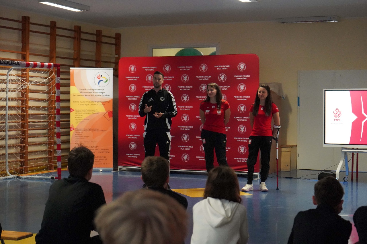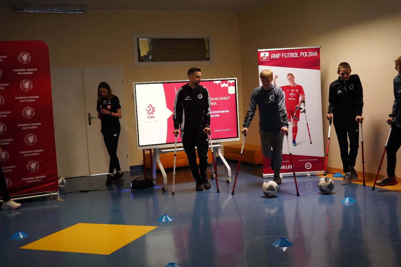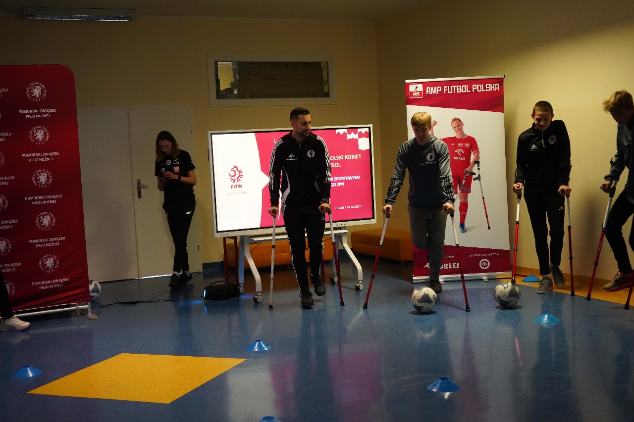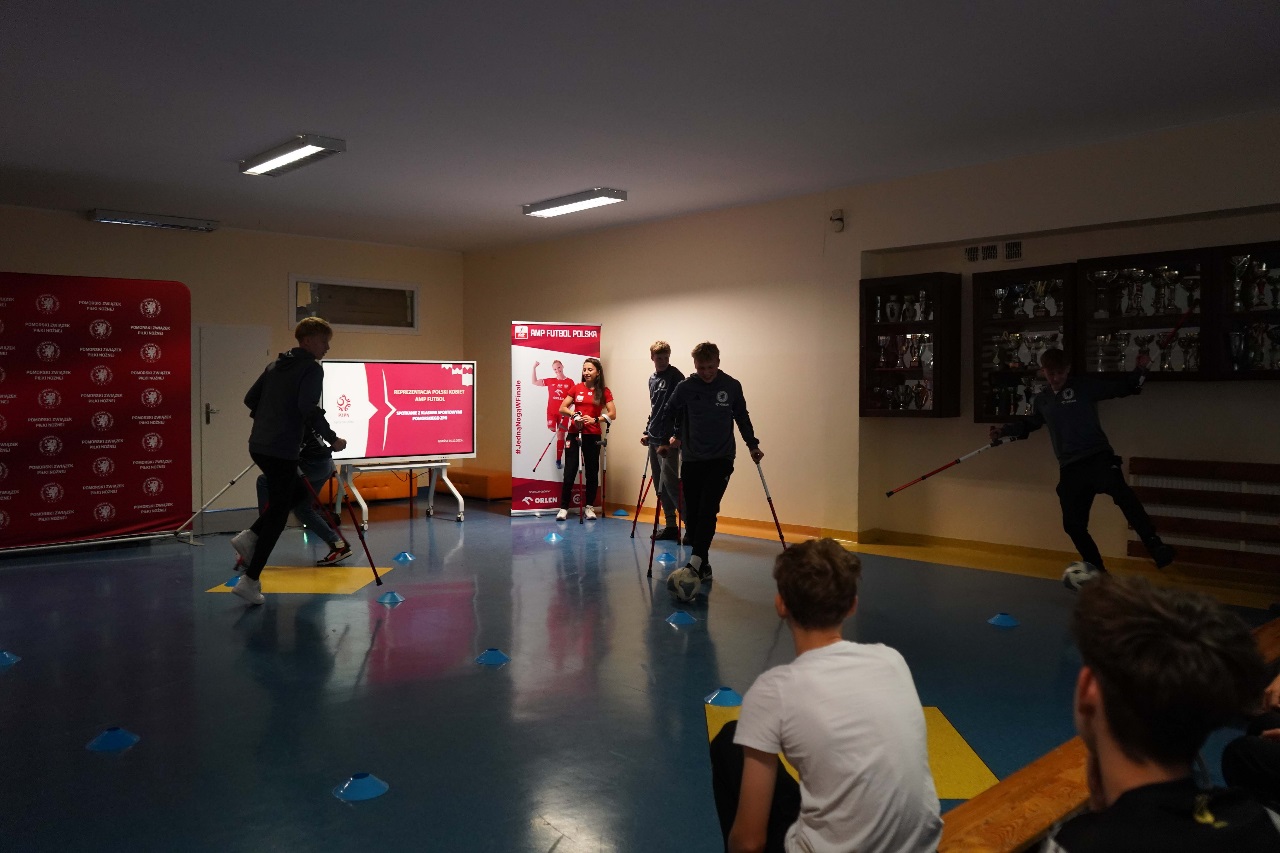 - Sport nie zna barier. Mamy więcej sukcesów niż nóg – mówiła Monika Kukla uczniom klas siódmych i ósmych zgromadzonym w szkole na gdańskiej Żabiance, czym wywołała salwy śmiechu. Było widać i słychać, że biało-czerwonym nie brakuje dystansu do siebie. Po inspirującej prezentacji przyszedł czas na grę. Młodzi piłkarze mogli sprawdzić jak trudno gra się o kulach. Okazało się, że mimo pełnej sprawności i świetnej kondycji naszych uczniów mieli oni problem z koordynacją i obciążeniem. To tylko pokazuje jak wymagający jest to to sport.