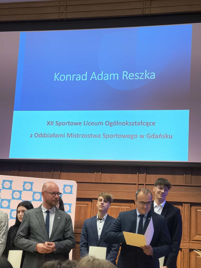 Dzisiaj na Politechnice Gdańskiej odbyła się Wojewódzka Gala wręczenia dyplomów Stypendystom Prezesa Rady Ministrów na rok szkolny 2025/2026. Stypendystą został Konrad Reszka. Dyplom wręczył Pan Emil Rojek - Wicewojewoda Pomorski oraz Pan Grzegorz Kryger Pomorski Kurator Oświaty.