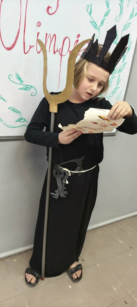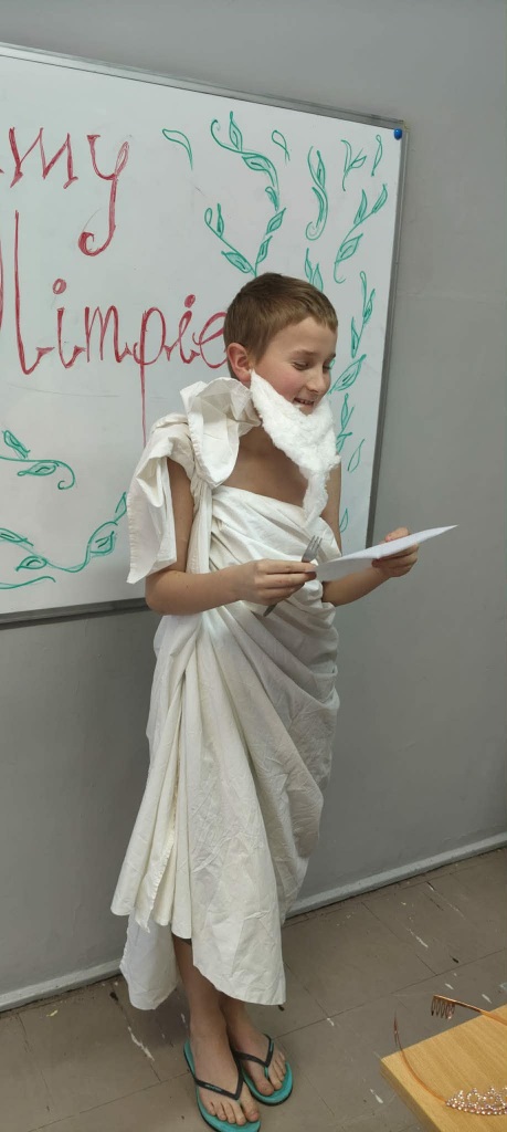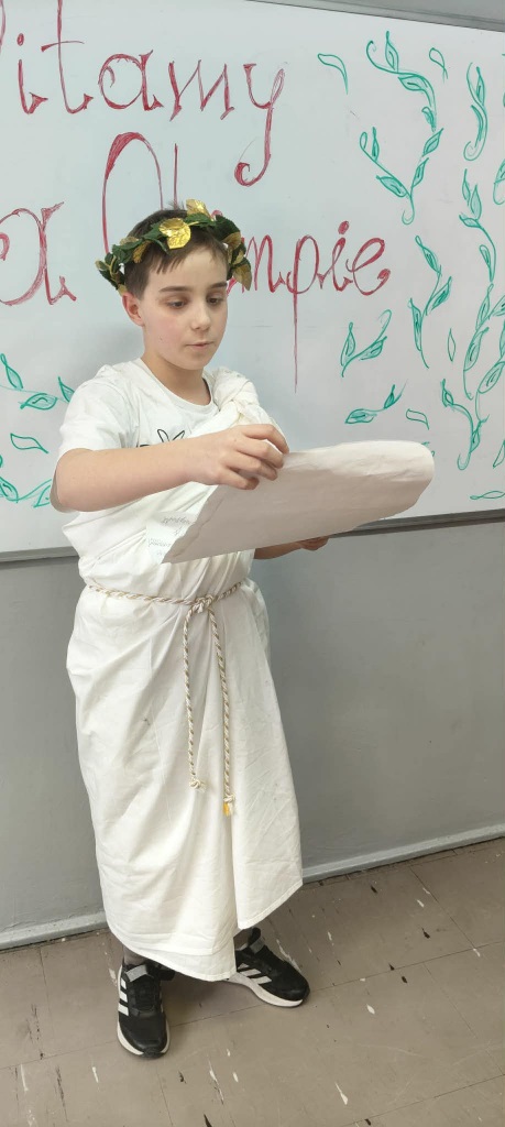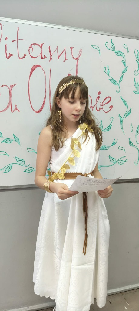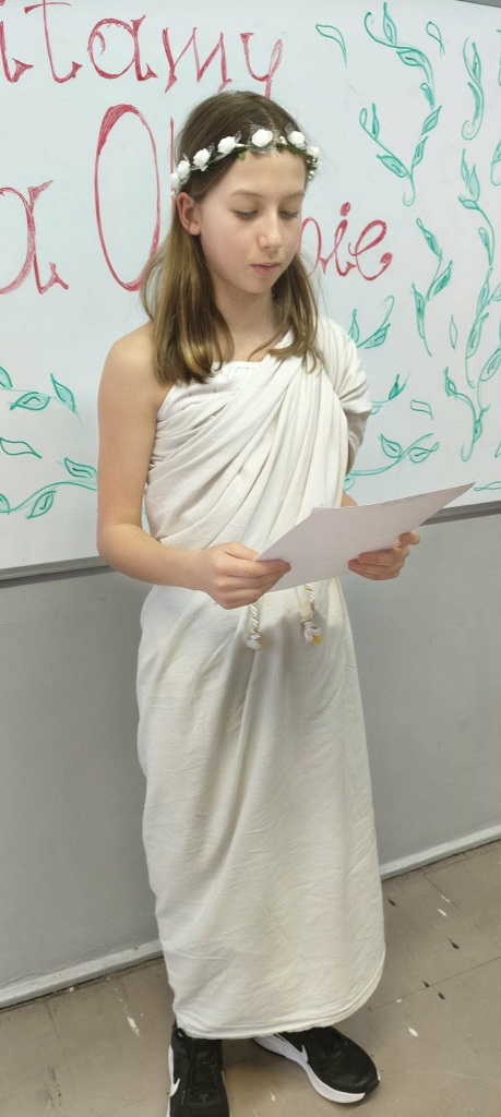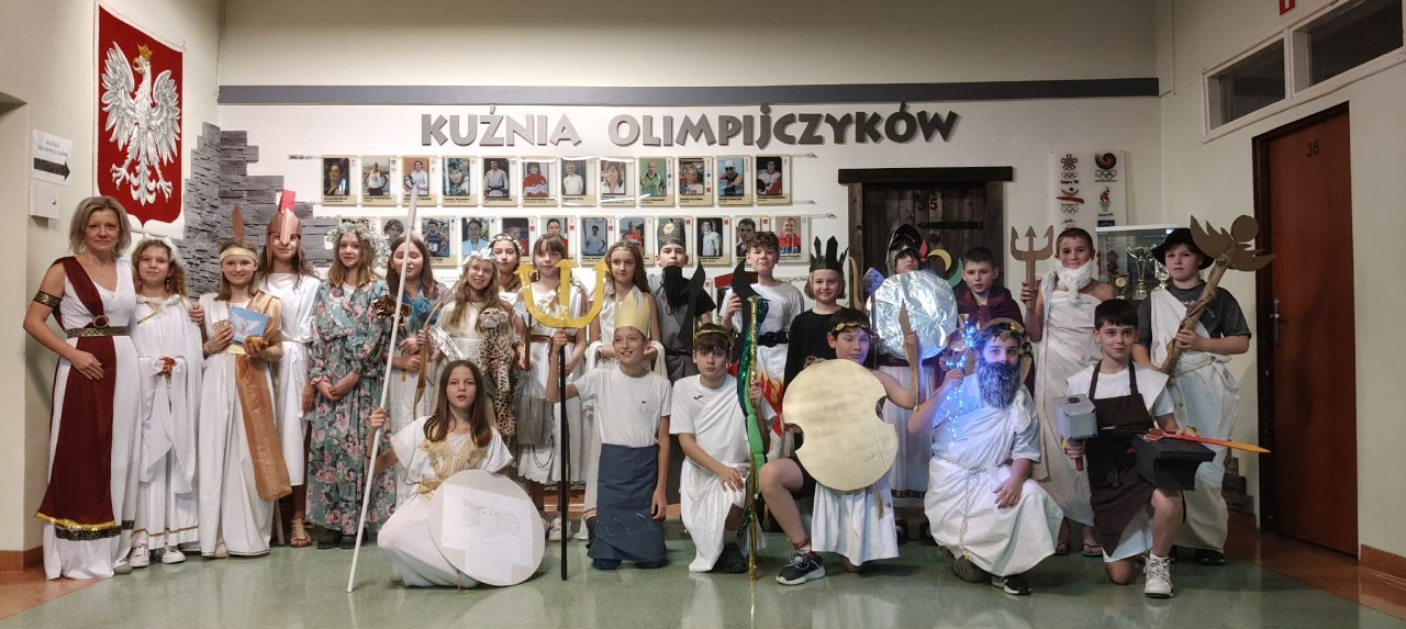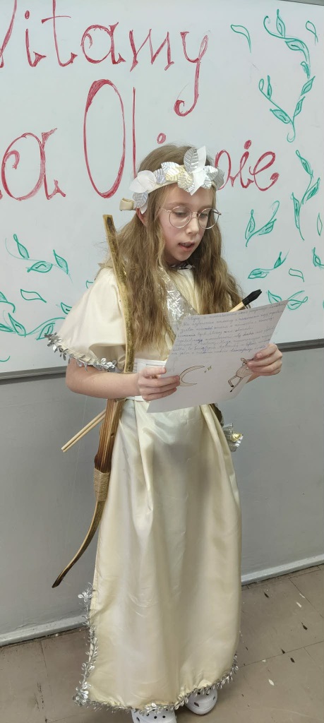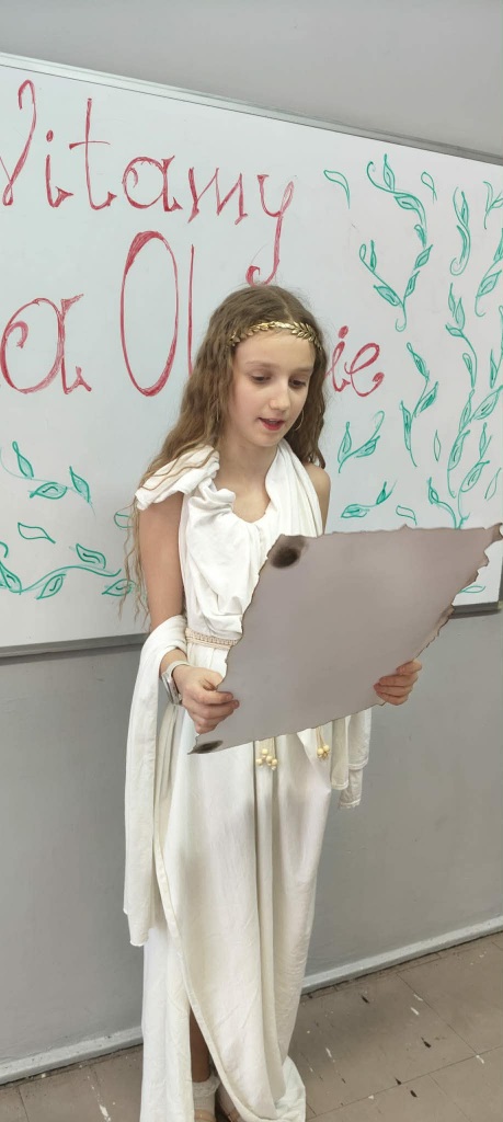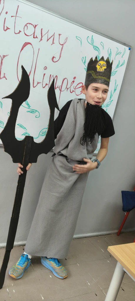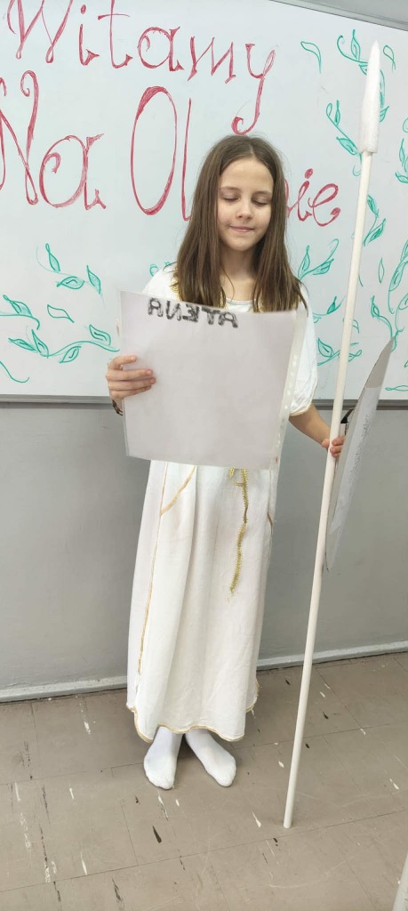 „Na Olimpie” – lekcja otwarta dla rodziców W naszej szkole wierzymy, że nauka historii i mitologii wcale nie musi być nudna! Przekonali się o tym rodzice uczniów klasy VA, którzy mieli okazję uczestniczyć w lekcji otwartej pt. „Na Olimpie”. Tego dnia sala lekcyjna nr 18 zmieniła się w siedzibę greckich bogów. Pod czujnym okiem rodziców oraz nauczyciela uczniowie przygotowali niezwykłe widowisko.Każde dziecko wcieliło się w wybraną postać z mitologii greckiej, prezentując nie tylko imponujące, własnoręcznie przygotowane kostiumy i boskie atrybuty, ale także ogromną wiedzę. Lekcja była doskonałą okazją do rozwijania kreatywności, umiejętności wystąpień publicznych oraz integracji z rodzicami, którzy z dumą i uśmiechem obserwowali występy swoich pociech.