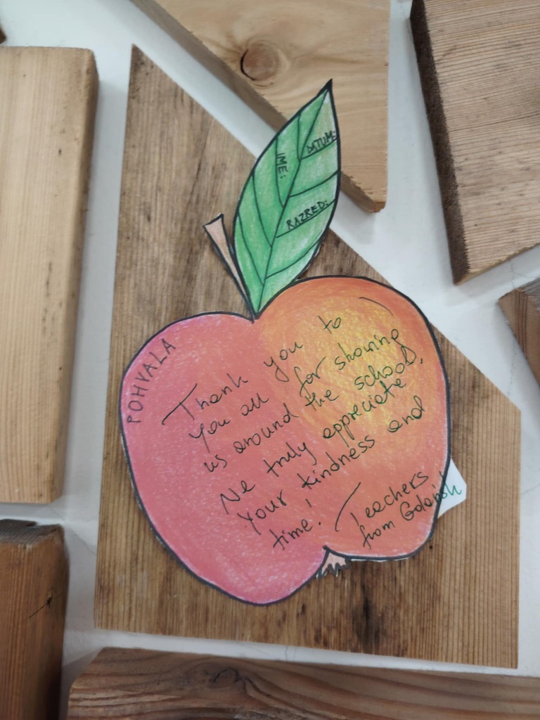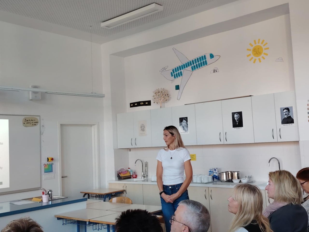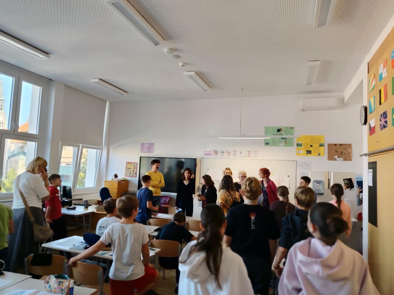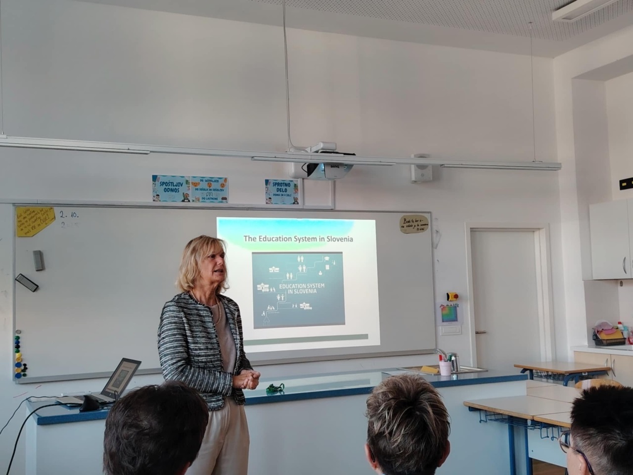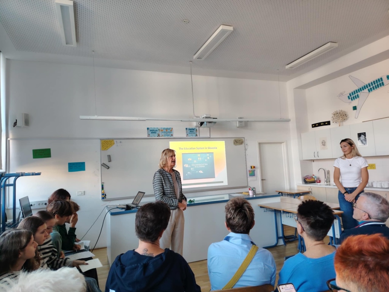Podczas wizyty po szkole oprowadzali nas uczniowie, którzy z ogromnym zaangażowaniem opowiadali o organizacji zajęć dydaktycznych zarówno w murach szkoły, jak i poza nimi. Dzielili się także swoimi pasjami oraz licznymi osiągnięciami, które są powodem do dumy całej społeczności szkolnej. Spotkaliśmy się również z Panią Dyrektor, niezwykle inspirującą osobą pełną pasji i serca, która przybliżyła nam system edukacji w Słowenii oraz historię placówki.