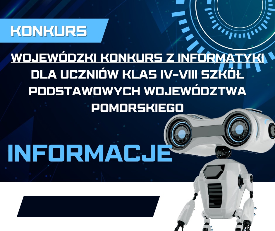 Informujemy, że w roku szkolnym 2025/2026 odbędzie się Wojewódzki Konkurs Informatyczny dla uczniów klas IV–VIII szkół podstawowych województwa pomorskiego.